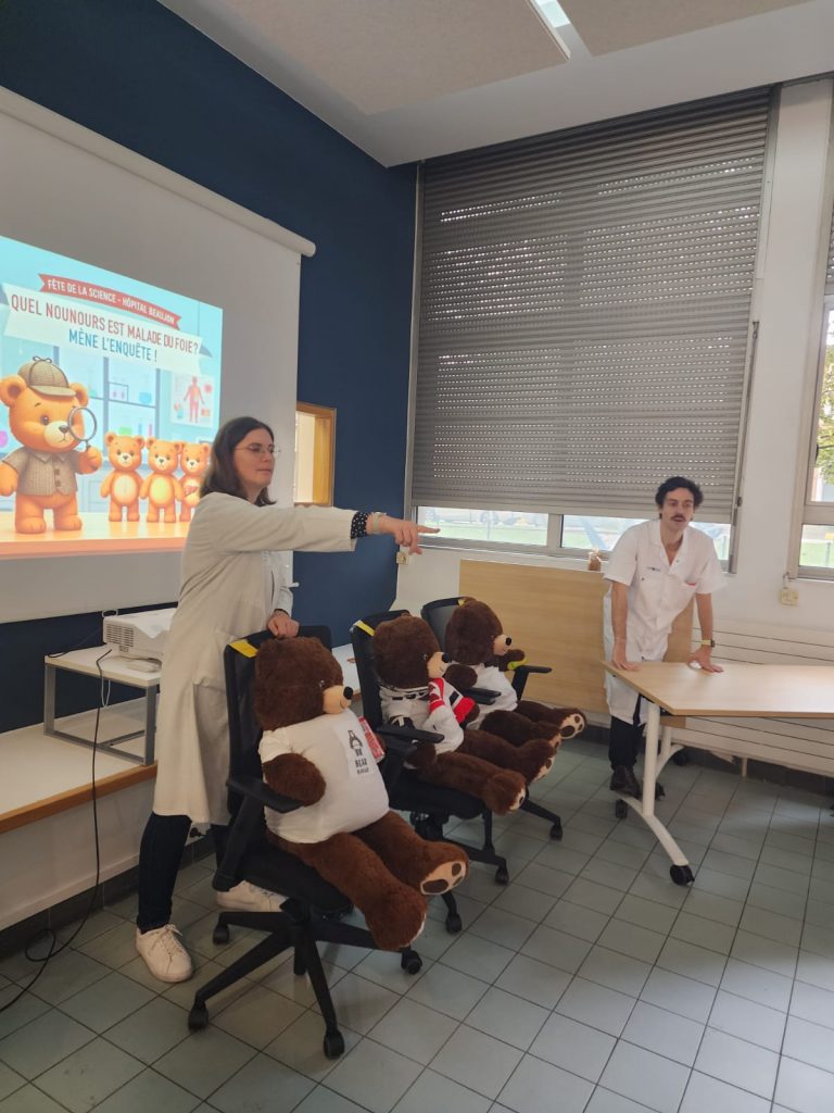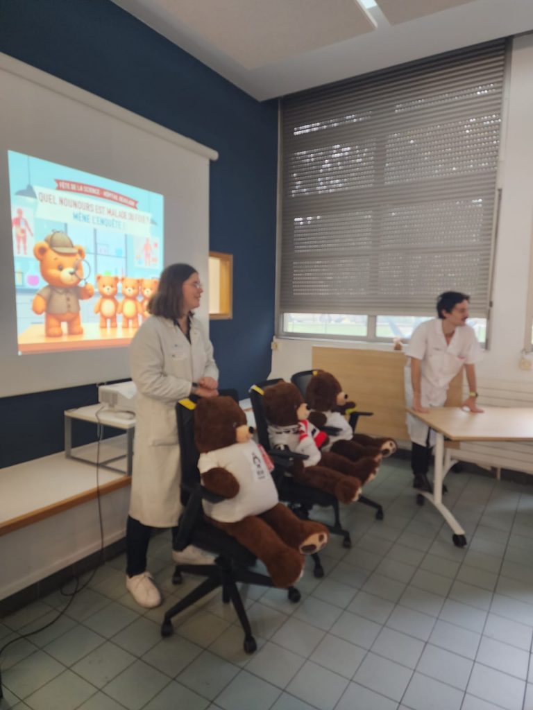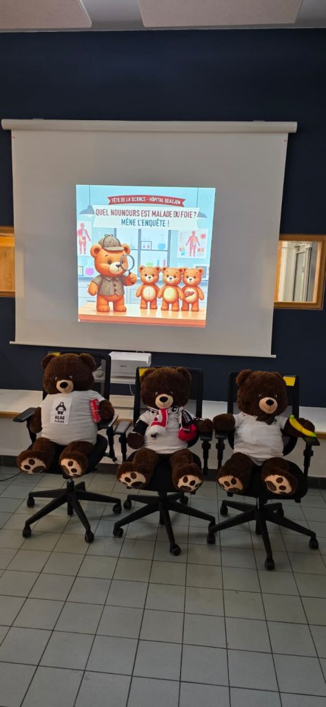 🐻 À travers un parcours mêlant nounours-patients, cartes de jeu, affiches interactives et activités manuelles, les enfants ont pu se glisser dans la peau de jeunes chercheurs. Ensemble, ils ont résolu le mystère du “foie malade” et découvert les bons gestes pour garder cet organe en pleine santé !
